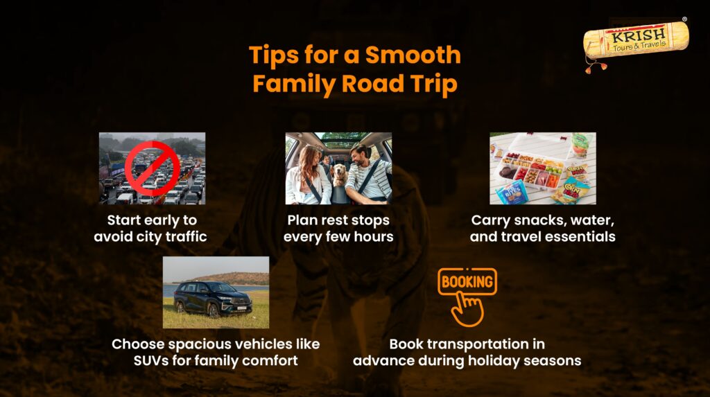 - Choose spacious vehicles like SUVs for family comfort