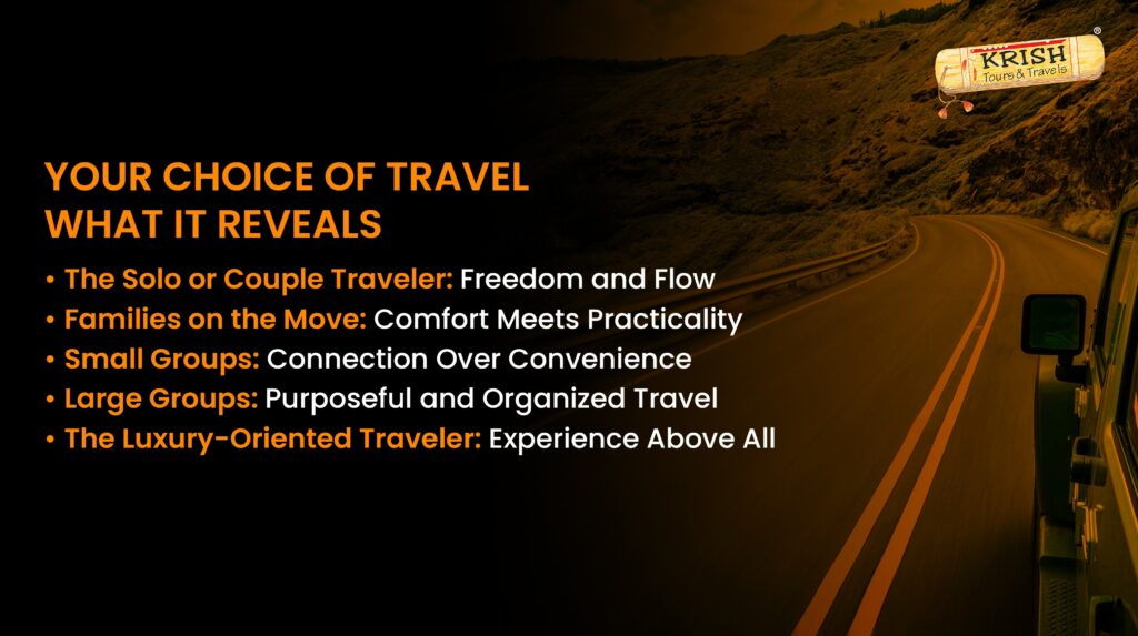 At its core, your choice of vehicle reflects your relationship with travel. It shows whether you travel to escape, explore, or connect, or do you prefer solitude, family bonding, or group energy?